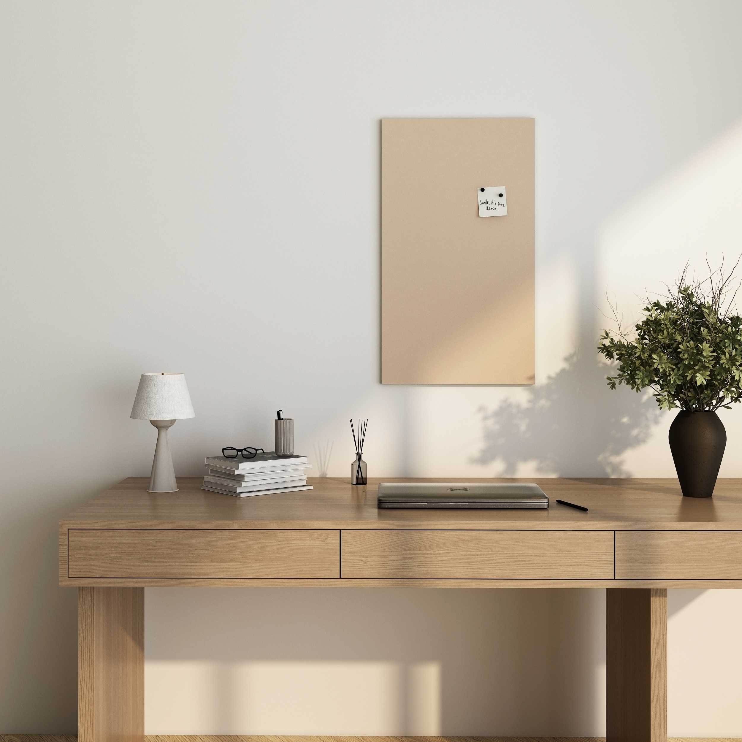 La bacheca viene realizzata secondo le tue esatte dimensioni e consegnata completamente pronta per l'uso, con fori preforati sul retro e viti incluse, in modo che possa essere facilmente montata sulla parete. Inoltre, puoi combinare i colori e i bordi esattamente come desideri, affinché la bacheca si adatti perfettamente alle tue esigenze e al tuo stile di arredamento personale.